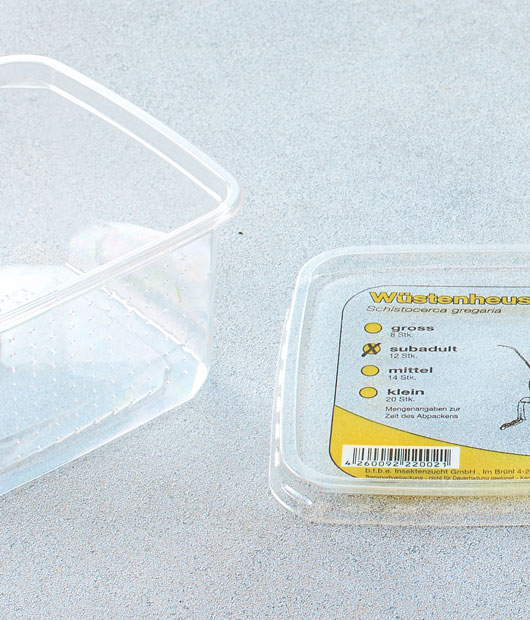 Dieser Artikel ist speziell für den Heimtierbedarf. Transportverpackung für Heuschrecken, Mehlwürmer oder andere Inskten.