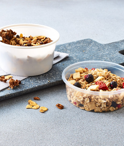 Runde Feinkostbecher aus Polyvinylchlorid (PVC), Polypropylon (PP) und Polystyrol (PS): in transparent, glatt oder geriffelt.