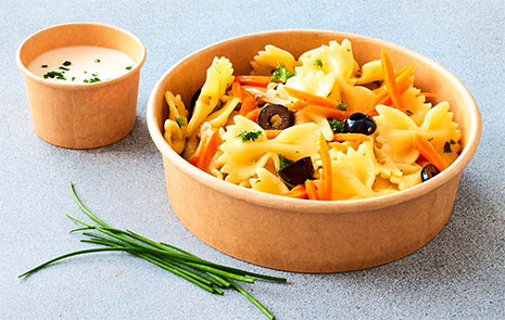 Unser BioBipack Sortiment umfasst Schalen und Becher aus Kraftpapier mit PE-Beschichtung und kompatiblen, separaten, recycelbaren Deckeln aus PET, PP und Kraftpapier.